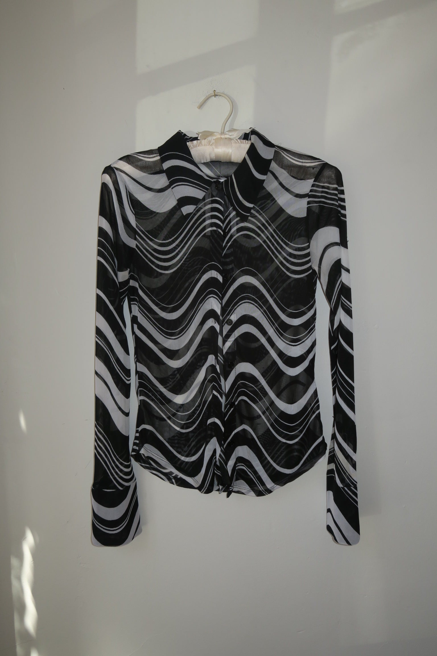 Black and White Swirl Sheer Button Up